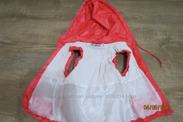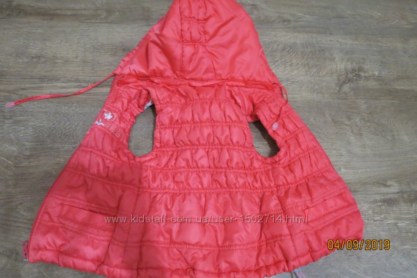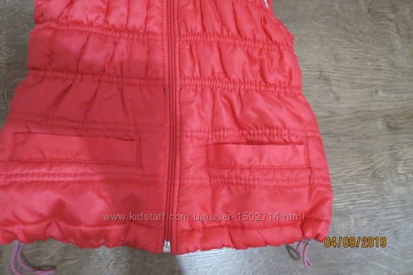 Продам нашу жилётку в идеальном состоянии, без пятен, зашитостей. Замки работают отлично. Есть два кармана, небольшой утеплитель, капюшон отстёгивается, есть утягивающие резиночки внизу и на капюшоне. Жилётка смотрится очень красиво. Возврат не предусмотрен.