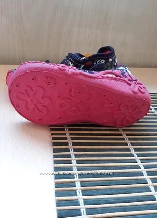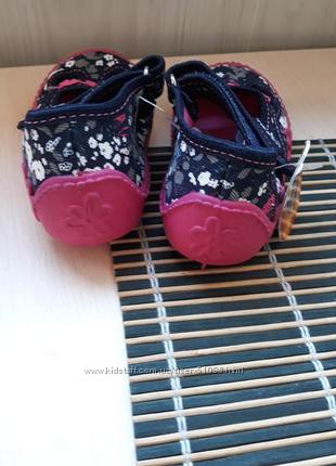 Текстильная обувь практичная и идеально подходит для маленькой принцессы. Изготовлена из натурального хлопка. Твердый задник обеспечивает устойчивость и безопасность при ходьбе. Обувь изготовлена из легкого, прочного к истиранию ПВХ. Днище, не скользит. Липучки позволяют регулировать легкость введения стопы. Стельки отсутствуют.22 р. - 13,2 см