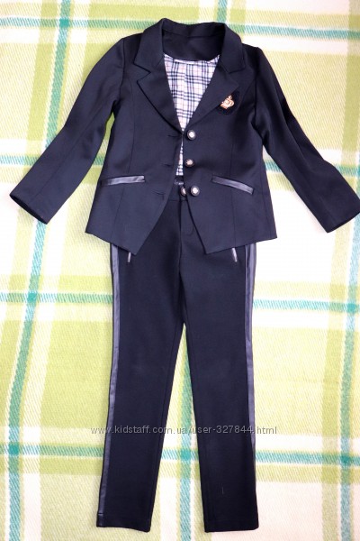 Продам школьный костюм в идеале! Пиджак вообще не одевали, штаны 1 раз! По бирке на 122 , но можно и раньше. Очень стильный, и качественный. Состав на фото указала, вставки из тонкого кожзама. На фото девочка в серых брюках этой же модели ддля примера. Есть небольшой нюанс на брюках( на посл.фото)- одевали 1 раз на рост 116 см с подворотом.Замеры по запросуБез торга! Покупала за 1700 грн...