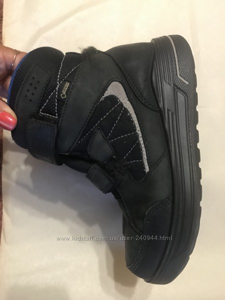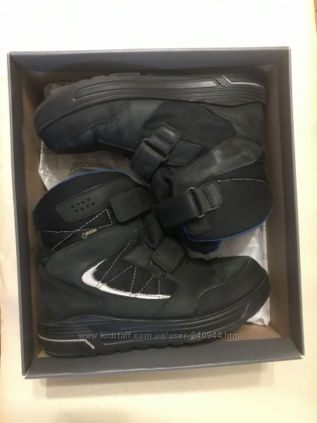 Детские ботинки ECCO. Прекрасный выбор для активных детей. Теплая подкладка и GORE-TEX защищает от влаги и холода. Система фиксации Quick Fastener позволяет легко и быстро надевать ботинки. Легкая подошва из полиуретана и термополиуретана обеспечивает прекрасное сцепление.