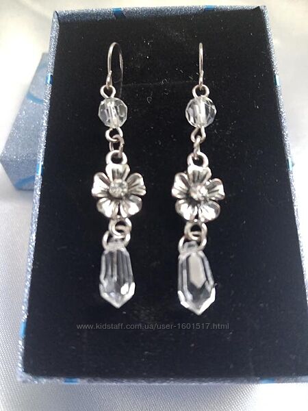 4.Посеребрение, стразы сваровски, горный хрусталь.Длина-5см, крепится крючком. Посеребрение, стразы Сваровски, горный хрусталь.-150грн.