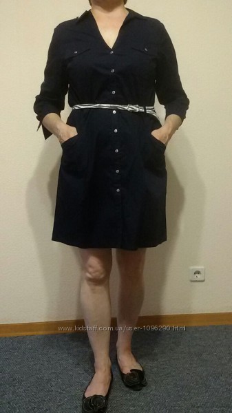 Подробное описание: Платье-рубашка Mango синее хлопковое c ремешком, L-XL