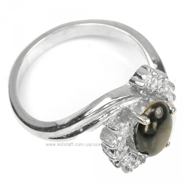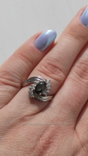 Подробное описание: Кольцо серебряное 925 натуральный черный сапфир, цирконий.
