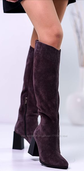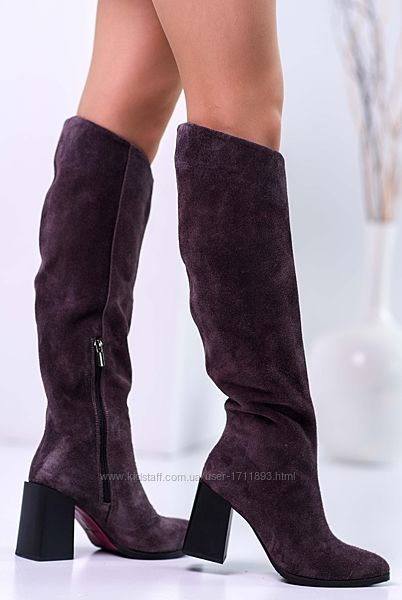 Подробное описание: Женские натуральные замшевые высокие сапоги на высоком каблуке замша Италия