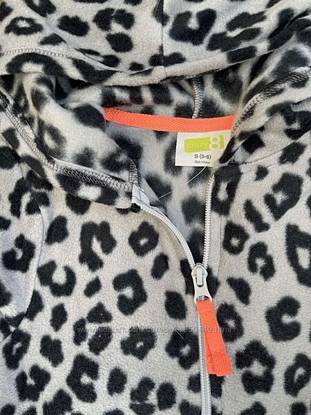 Микрофлисовое теплое худи джемпер с леопардовым принтом на девочку Crazy8 Размер S(5-6) Рост 114-122 смУдобно одевается, застегивается на груди на молнию, с капюшоном. Очень мягкий микрофлис хорошо сохранит ребенка в тепле. Отлично дополнит гардероб Вашего ребенка, подойдет для прогулок в прохладную погоду. После стирки сохраняет первоначальную форму и яркость цвета, не скатываются. Состав: 100% полиэстер, микрофлис.