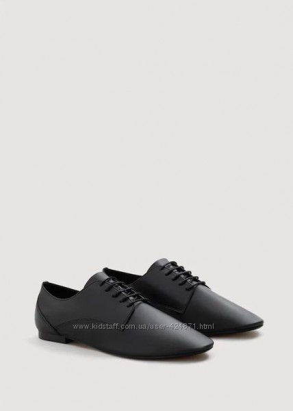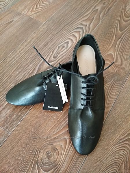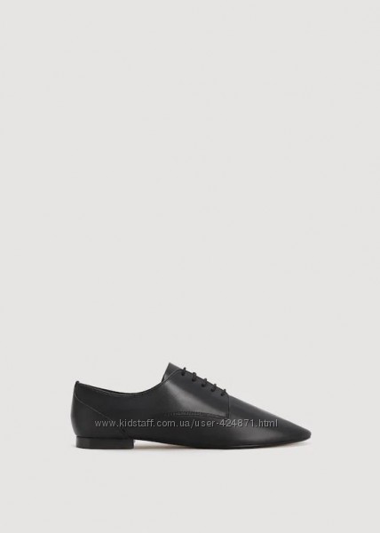 Подробное описание: м´які шкіряні чорні жіночі туфлі на шнурках, дербі 37 mango оригінал