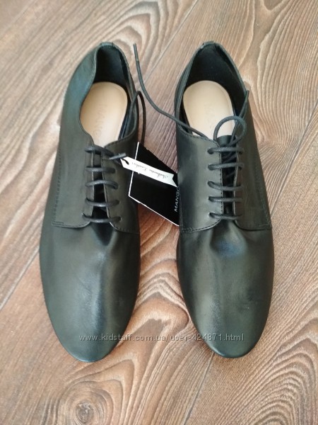 м´які шкіряні чорні жіночі туфлі на шнурках, дербі 37 mango оригінал