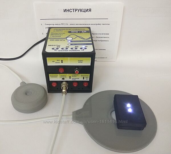 В комплекте: ТГС-3А с модулятором, 2 катушки - тор, средняя плоская 14 см, индикатор поля, инструкция.