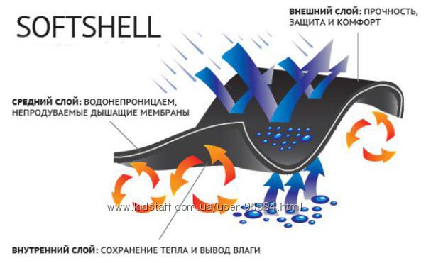 Тканина куртки - софтшелл, тришарова, з термоефектом.