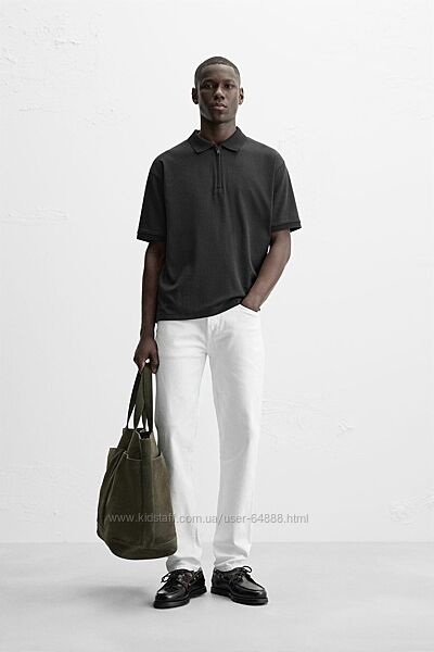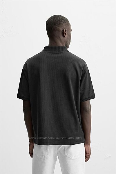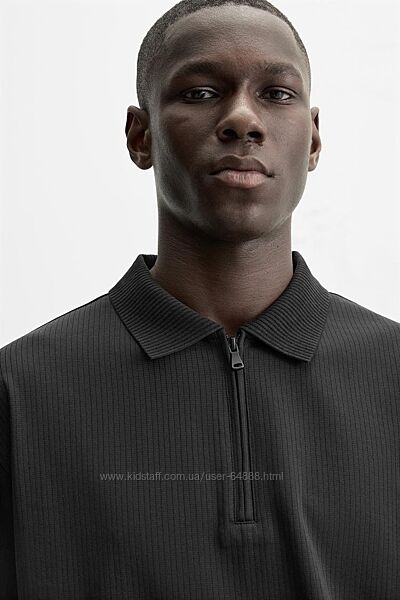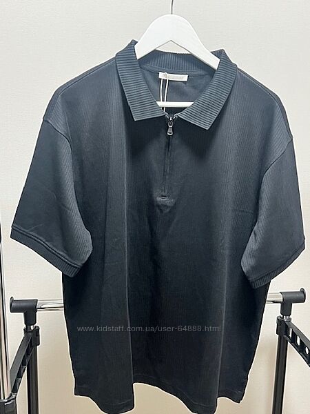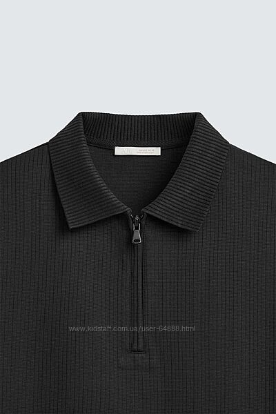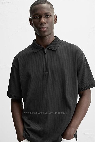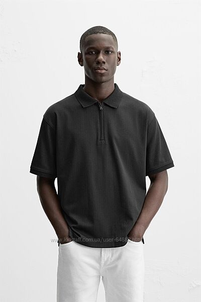 Поло в рубчик чорого кольору Zara (polo estructura cremallera 4092/402)В наявності розмір XL