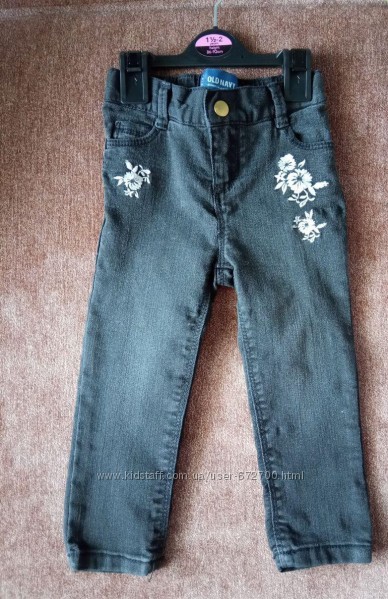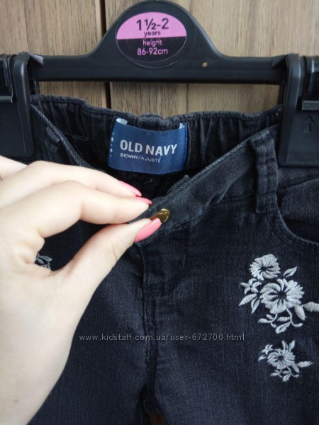 Очень классные джинсы на девочку 1-2 годика фирмы OldNavy на рост 86-92 см. Джинсы стрейчевые, очень мягкие, удобные, хорошо сидят на фигурrе. Спереди и сзади по два кармана, застегивается на пуговицу и молнию, пояс на резинке-утяжке. На джинсах красивая вышивка.Состояние очень классное\идеальное,как новое, так как одевали раза 2, быстро выросли.