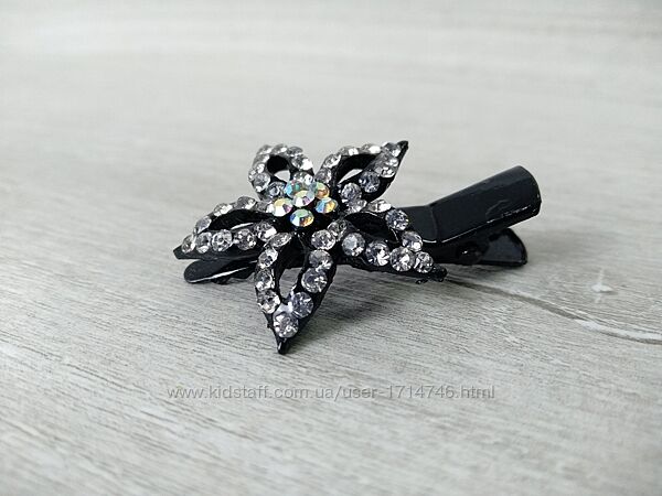 Металічна заколка на волосся з камінчиками квіточка (арт. 5261). Зажим.Довжина заколки 4 см.