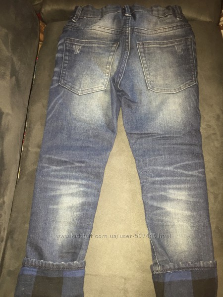 Продам тёплые джинсы H&M 5-6 лет,с стильными заплатками,на хлопковой подкладке,талия на кнопке,внутри есть утяжки,модель «скинии фит»-на худых деток,все потертости родные.Штанины на контрастном подкате,в идеальном состоянии-одеть успели считанные разы.Перешлю или самовывоз с Оболони,возврата нет.Другие объявления продавца