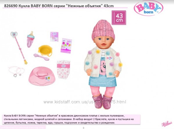 Подробное описание: Кукла Baby Born Нежные объятия Zapf Стильный лук 826690