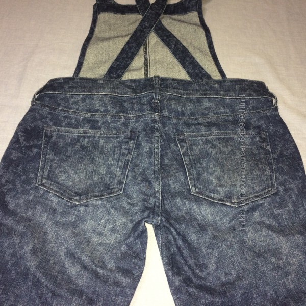 Размер М Как новый! Цвет: темно-синий с узором Состав: 71% котон, 18% полиестер, 10% вискоза, 15% эластан Замеры: длина штанины - 100 см длина штанины по внутреннему шву - 79 см полуобхват по талии сзади - 40 см, спереди - 41 см посадка спереди по шву до - 22,5 см, сзади по шву - 33,5-34 см полуобхват по бедрам примерно в средней части - 48 см высота переднего клина от пояса - 30-31 см, у основания ширина клина - 37 см Шлейки регулируются в два положения Цена: 330 грн Условия возврата: возврата нет