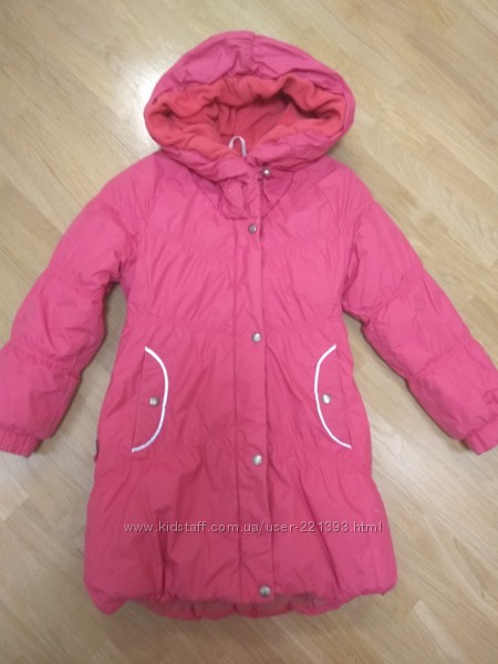 1) Зимнее пальто Lenne, коралловый цвет , 134 см (плюс-минус 6 см) Пальто в хорошем состоянии.Длина - 68 см