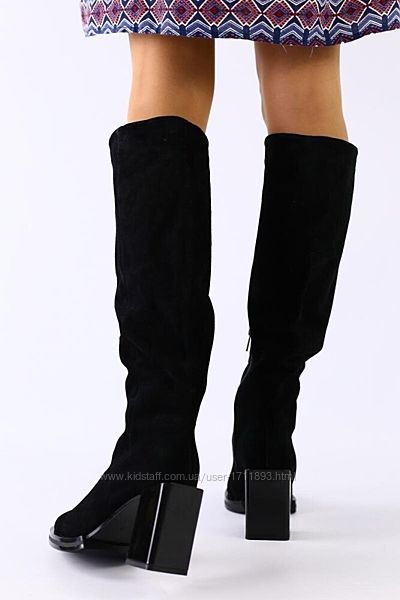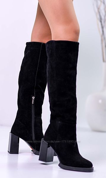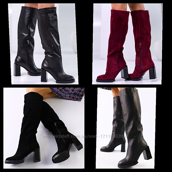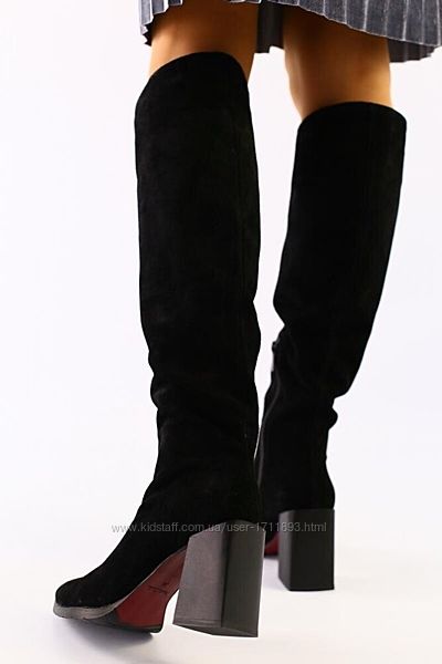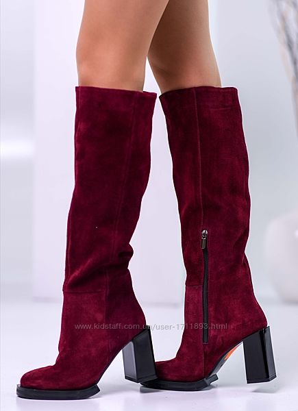 Подробное описание: Женские натуральные кожаные замшевые высокие сапоги на высоком каблуке кожа