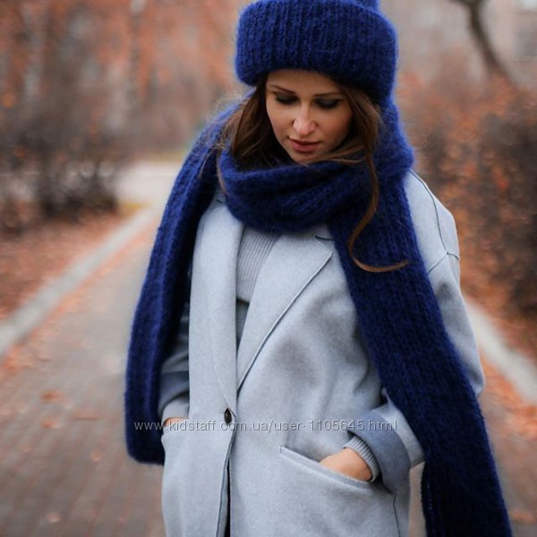 Подробное описание: теплый пушистый Комплект двойка Шапка Такори Шарф мохер синий