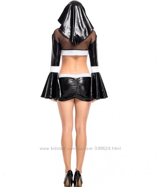 Костюм соблазнительной монашки состоит из головного убора, укороченного топа и мини-юбочки. Материал качественный, эластичный, тянется.