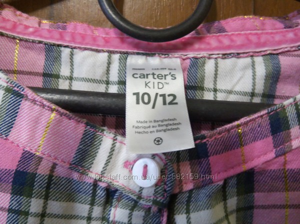 Новая фланелевая рубашка Картерс, размер 10-12, немного маломерит, подойдет на нехуденькую девочку) Дочери уже впритык...Очень красиво смотрится с лосинами, т.к. удлиненная.