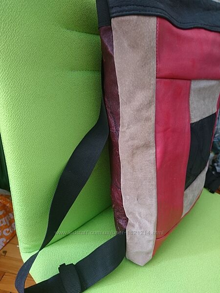 Кожаный рюкзак на молнии "Абстракция", на подкладке, внутри открытый кармашек для мелочи, на стропах(регулируемые), короткая ручка. Размеры 42х27х6 см. состояние на фото. 100% кожа, 100% замш., 450грнБольшой кожаный рюкзак черно-красный, на подкладе, два открытых кармашка на кнопках впереди, два потайных кармашка сзади на кнопках, застежка карабин, стропы регулируемые, маленькая ручка.