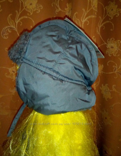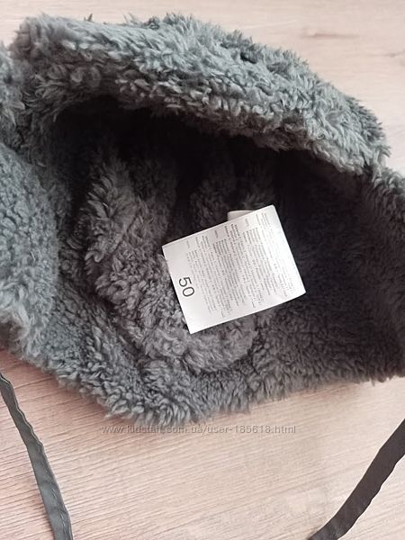 Верх водовідштовхувальна плащова тканина, всередині штучне хутро, зав´язується мотузками, добре прикриває і вушка, і шию, і лоб дитини.
