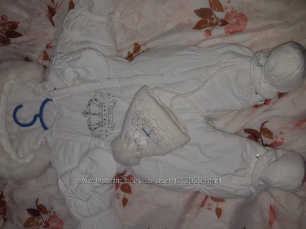 Продам белоснежный комбинезон трансформер , также делается конвертом для новорождённого. Состояние вещей идеальное розмер указам 68 максимум идёт до 74 см. Подкладка овчинка, на более тёплую погоду можно её снять. Продаю только комплектом с человечком меховушкой полевой и шапочкой jamiks в шапке утеплитель изософт. Очень лёгкая и тёплая , помпон натуральный. Цена указана за наборДругие объявления продавца