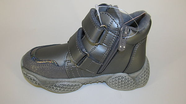 Оригинальные стильные демисезонные ботинки на байке от фирмы Сказка для девочек серого цвета с серебром. Очень красивые в реальности, фото не передает полностью блеск и добротность. В середине мягкая байка (флис).На липучках. Сбоку замочек. Удобные. Продаются в индивидуальной фирменной коробочке. Подходят на любой подъем и полноту ножки.