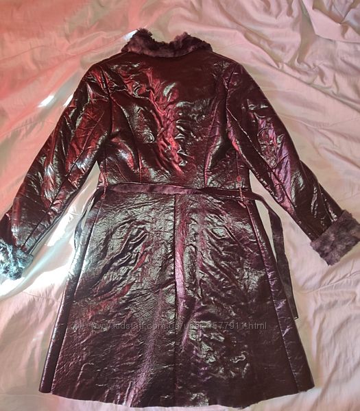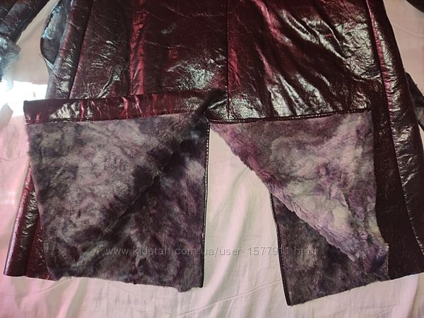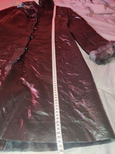 Тёплое лакированное пальто ("еврозима"), внутри искусственный мех. На пуговицах, есть пояс. Замеры на фото.Другие объявления продавца