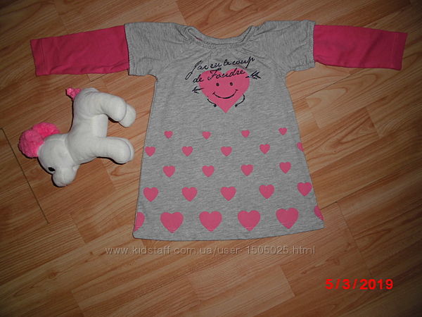 Продам очень красивое платье_туничку новое Prenatal, но без бирки, ребенок сорвал случайно. По бирке размер 6_9 мес. на рост 65_71, но по моему можно носить и дольше. Оринтируйтесь на замеры. Длина 39 см., ширина под мышками 24 см.Рукавчик от горловины 29 см.