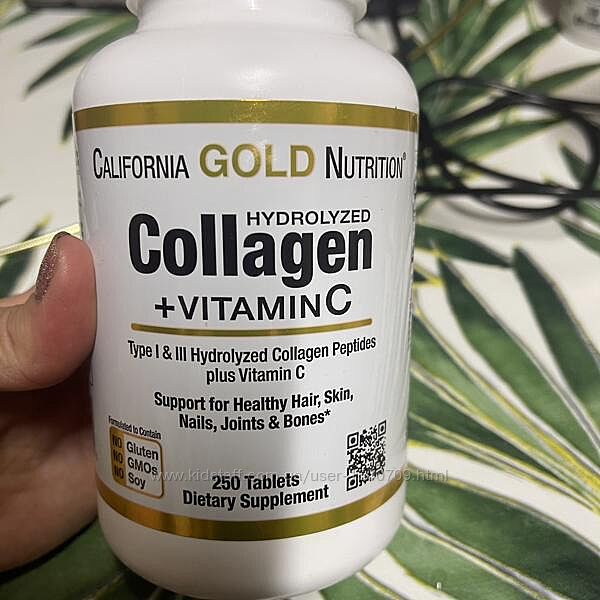 Гідролізований колаген із вітаміном С California Gold NutritionПептиди гідролізованого колагену типів 1 і 3 та вітамін СПідтримка здоров’я волосся, шкіри, нігтів, суглобів і кісток*Продукт не містить глютену, ГМО та соїВиготовлено на підприємстві, яке має реєстрацію сучасної належної виробничої практики (cGMP) і проходить незалежні перевіркиГарантія 100 % Gold GuaranteeКолаген є основним структурним білком, що міститься в суглобах, кістках, шкірі, волоссі, нігтях та інших сполучних тканинах. Він відповідає за підтримання міцності, еластичності та гнучкості цих тканин в організмі. Комплекс гідролізованого колагену з вітаміном C California Gold Nutrition містить унікальні, клінічно досліджені, ферментативно гідролізовані низькомолекулярні пептиди колагену з вітаміном C. До складу продукту входять основні будівельні елементи, необхідні для підтримки здоров’я волосся, шкіри, нігтів, суглобів і кісток*. Приймаючи продукт як харчову добавку, ви забезпечуєте організм сировиною, необхідною для підтримки міцності та цілісності тканин*. Цей бичачий колаген із Аргентини проходить спеціальну обробку та ферментативно гідролізується (розщеплюється) на складові амінокислотні пептиди для забезпечення оптимальної абсорбції та біодоступності.