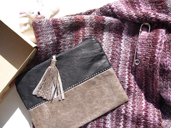 - косметичка из натуральной кожи, украшена кожаной кисточкой. Застежка - змейка - молния, внутри одно отделение, подкладка. Размер: косметички 17*13 см