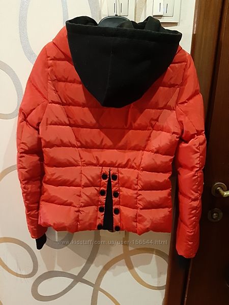 Теплая стильная куртка-пуховик с капюшоном, наполнитель пух, рукав резинка, на молнииЗамеры длина 57 см, под руками 45 см, рукав от плеча 62 см, от капюшона 70 смДругие объявления продавца
