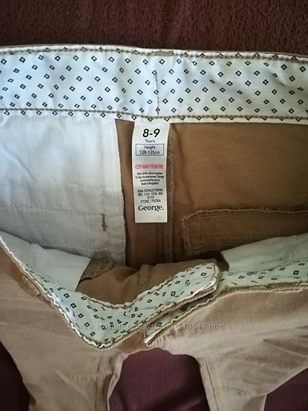Отличные скинни на рост 128-135 см от GeorgeСостояние новых, ни разу не оделись(не понадобились) 100%коттон,очень приятный к телу Цвет песочный(точнее передан на фото 1,на других вышел светлее) 2 боковых кармана, сзади 1,второй обманка Отлично будут для худенького