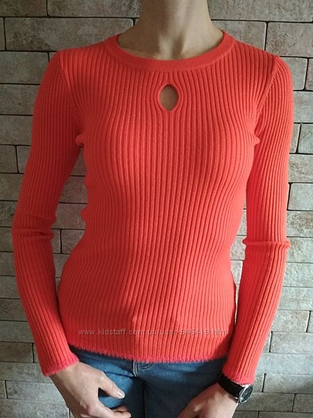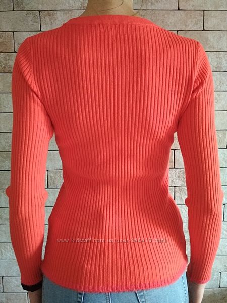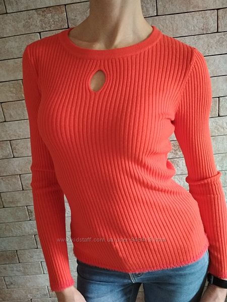 Эффектный пуловер огненно-оранжевого цвета от бренда Ebelieve. Пуловер вязки "резинка", по переду - под вырезом горловины небольшой вырез "капля". Декоративная окантовка по краю и низу рукавов. Материал мягкий, эластичный и очень приятный к телу. Отличное качество!Другие объявления продавца