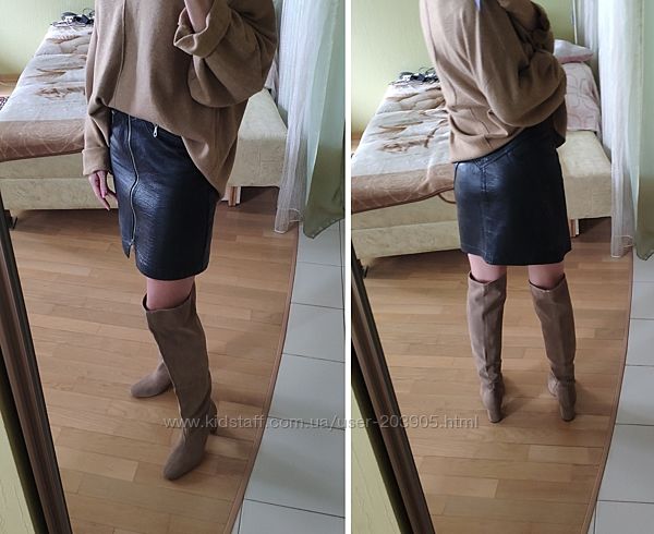 Кожаная юбка-трапеция мини на молнии. %%% распродаю частично свой гардероб, заходите! Тренд на кожу на пике популярности! Кожаную юбку носят под грубые ботинки или высокие сапоги, с макси пальто или пуховиком. натуральная кожа! вечная вещь ! отдам по смешной цене. размер на xs-s, бедра до 90, талия до 70 все молнии рабочие одето на 86-65-88 посадка средняя комфортная на талии (линия пупка) талия 34 бедра 45 длина 42 Доставка: укрпочта, новая почта, 100% предоплата Очень много моей другой одежды XS-S и обуви 27-28 размер на моей странице . Новая и Б\У в идеале [ссылка удалена]