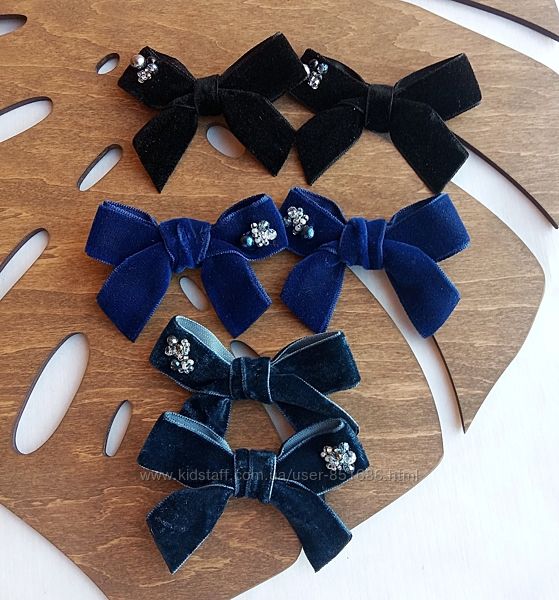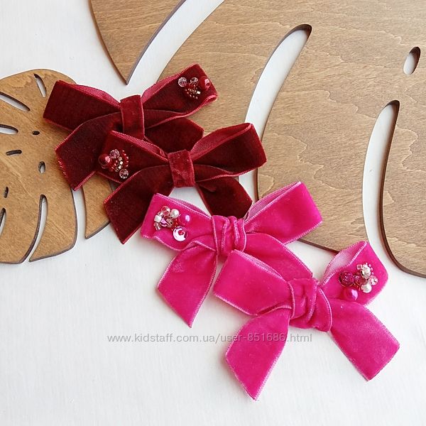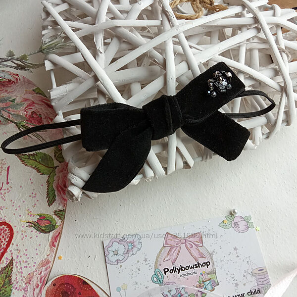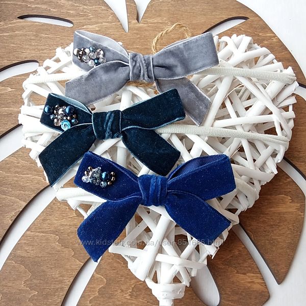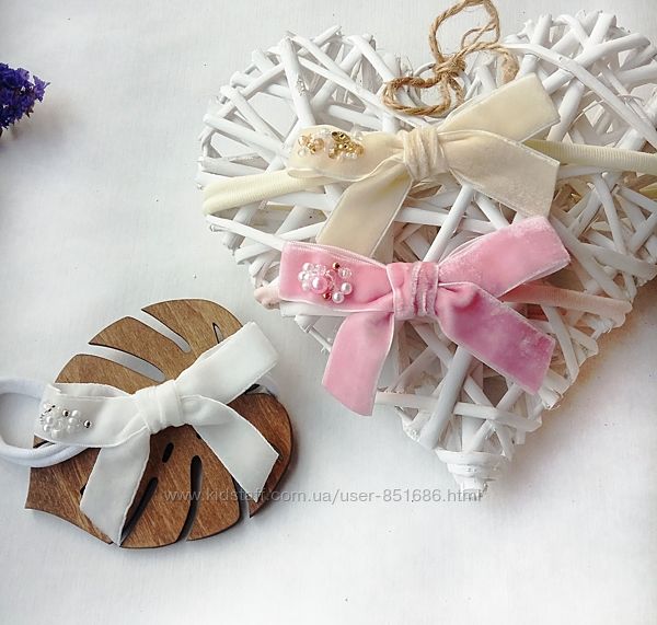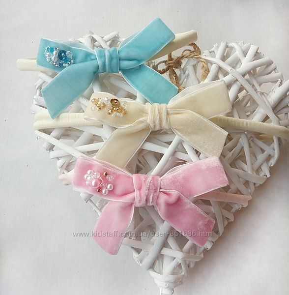 Велюровые бантики:* на бесшовной повязочке, серединка вышита бусинами, 100 грн.