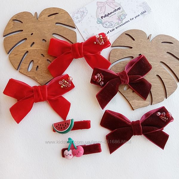 Подробное описание: Бархатные велюровые бантики резинки повязки черный красный белый бантик