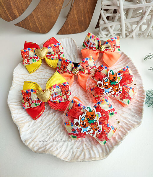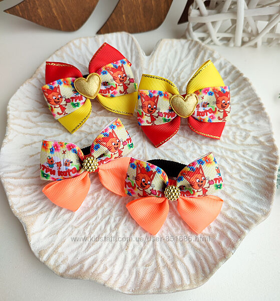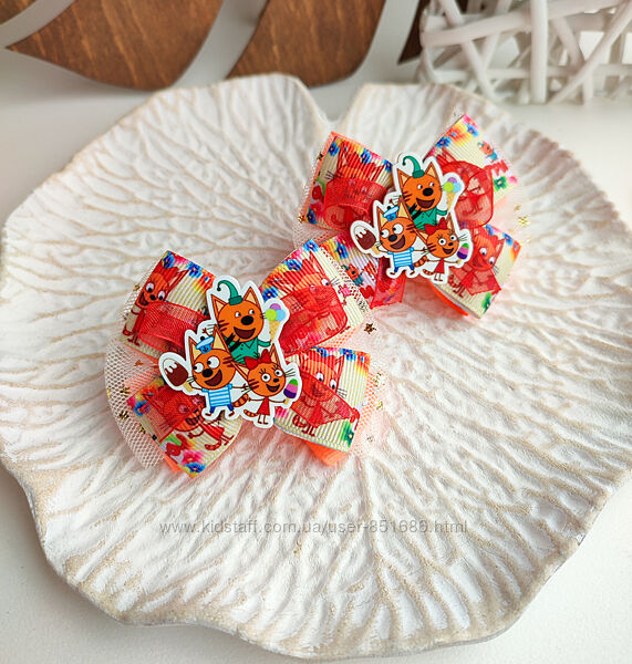 Бантики резинки для волос Три кота резинка банты для девочек с котиком