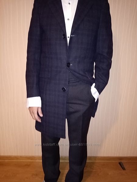 Пальто от Gianni Feraud. Однобортное пальто классического стиля. Одевалось (носилось) очень мало, т.к. стиль пальто и его философия очень необычны для наших широт, но стандартны для Большого Лондона.Пальто темно синего, почти черного цвета, с едва заметной клеткой. Материал: 80% шерсть, 18% полиэстер, 2% акрил.