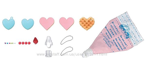 Замечательный набор для юных мастеров кулинарного искусства и всех кто хочет поучиться! Девочкам обязательно понравится быть как мама и украшать самой тортики и пирожные! Некоторые можно носить с собой ( 2 брелка ). В наборе идут основы, которые необходимо украсить кремом и разными аксессуарами . Потом крем затвердеет и всеми изделиями можно играть! Можно устроить отличное чаепитие для кукол. Не съедобное!