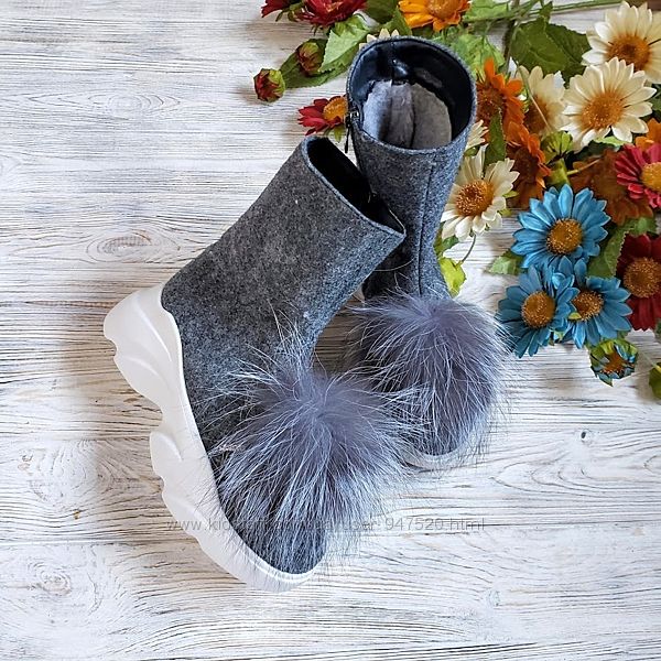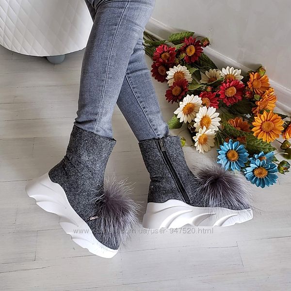 Подробное описание: Ботинки с помпоном из чернобурки, деми и зима