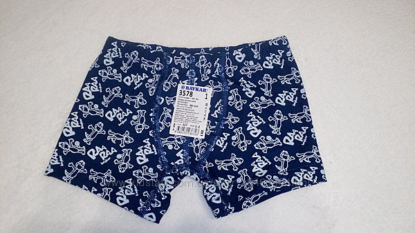 Трусы боксеры для мальчикаразмер 1, на 1-2 года, рост 98-104 см, синий, голубой, белый. Замеры: полуокружность вверху по резинке 21 см, полуокружность бедер 26,5 см, внешняя длина трусиков 17 см, высота сидения 15 см