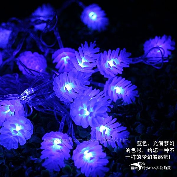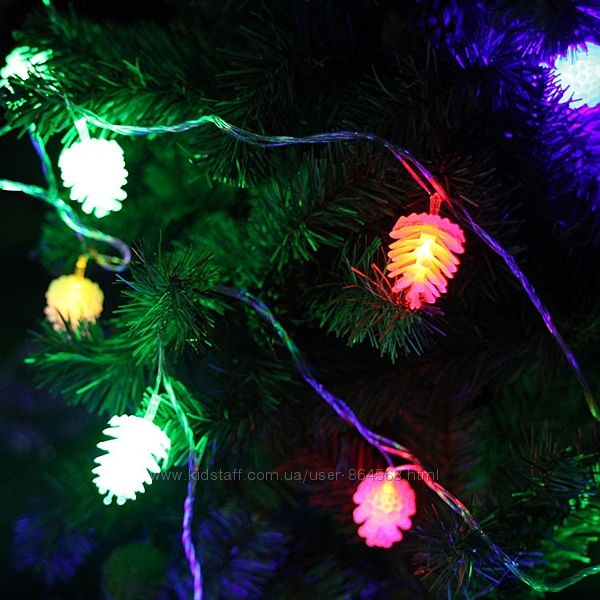 Очень красивая оригинальная Светодиодная гирлянда Шишка. Длина 10метров 100 лампочек. 8 режимов света( контроллер ) Питание 220вольт. Цвет свечения: RGB ( синий, красный, зеленый, желтый ) а также можно выбрать один цвет Синий, Зеленый, Фиолетовый или Холодный-Белый.Пересылка почтовыми службами по всей Украине.