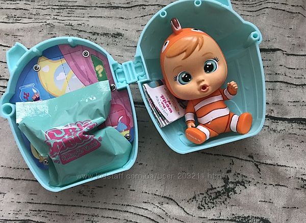 Куколка из серии Magic Tears выполнена из мягкого пластика. Как и ее "старшие" сестры, игрушка одета в прикольный костюмчик. В наборе может попасться одна из 24 Край Бебис, и у каждой свой характер и увлечения. Как и большие куклы, пупсики могут плакать настоящими слезами. Напоите пупса из бутылочки и надавите на животик.