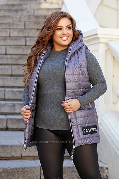 Подробное описание: Стильная женская жилетка с капюшоном большие размеры