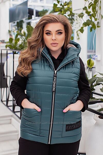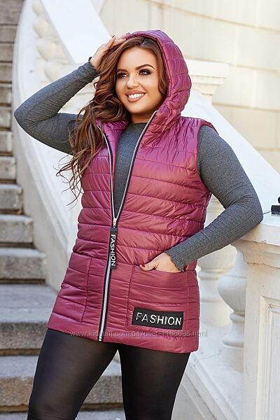 Стильная женская жилетка с капюшоном большие размеры