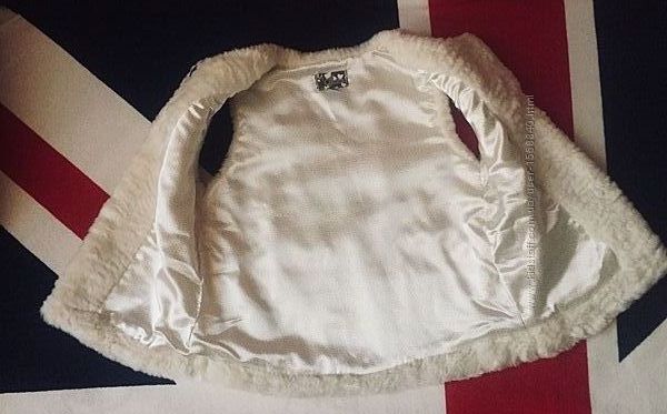 Ніжна жилетка біла пухнаста, штучно хутряна під каракуль, застібається на кнопку зверху, розмір на 7(8) років, зріст 122 (до 128-134 см).