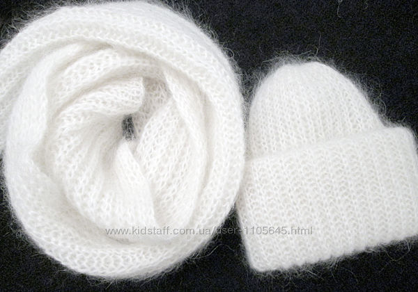 Подробное описание: теплый Комплект набор двойка Шапка такори Шарф мохер Белый