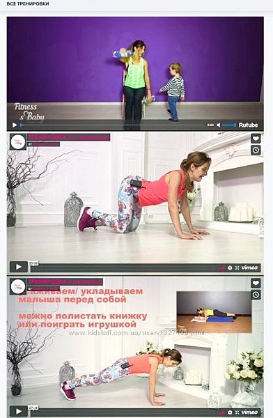 1) полнометражные тренировки в режиме «Включи и повторяй». 5 групп интенсивности, включая мам на ГВ и участниц с диастазом;